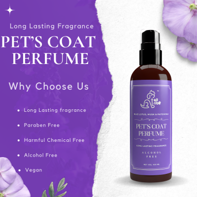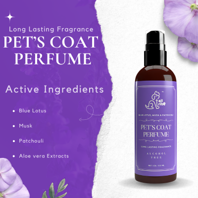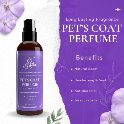 Indulge your pet with our luxurious Pet Coat Perfume, a blend of Blue Lotus, Musk, Patchouli, and soothing aloe vera extracts. Enjoy a long-lasting scent, keeping your furry friend fresh and rejuvenated between baths.